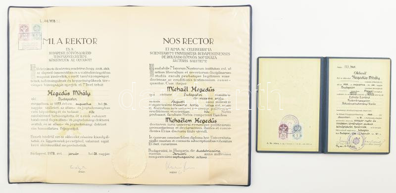 Leírás: 1969-1978 Tanári oklevél + jogi doktori diploma egy névre