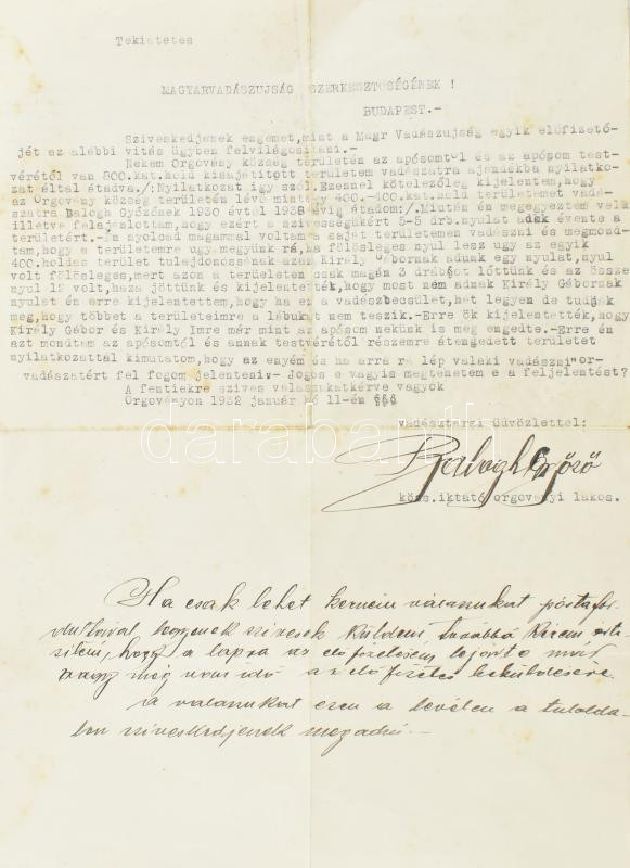 1932 Magyar Vadászújság részére szóló levél felvilágosítás ügyben, a h... https://www.darabanth.com/hu/439-Gyorsarveres/439.0/Mutargy-papirregiseg-egyeb/Tortenelmi-dokumentumok-keziratok-erdekessegek~1000021/1932-Magyar-Vadaszujsag-reszere-szolo-level-felvilagositas-ugyben-a-hatoldalan-a-val~II2885701