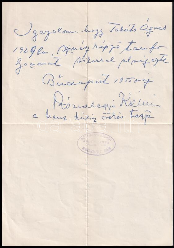1955 Rózsahegyi Kálmán (1893-1961) színész autográf levele https://www.darabanth.com/hu/439-Gyorsarveres/439.0/Mutargy-papirregiseg-egyeb/Tortenelmi-dokumentumok-keziratok-erdekessegek~1000021/1955-Rozsahegyi-Kalman-1893-1961-szinesz-autograf-levele~II2878117