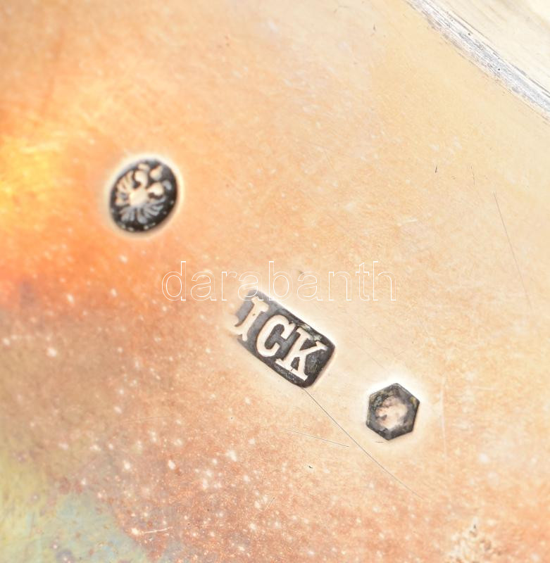Leírás: Ezüst tálca. Jelzett, mesterjegyes 661 g, d: 28 cm