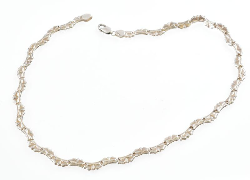 Ezüst(Ag) fantáziaszemes nyaklánc, jelzett, h: 44 cm, nettó: 11,5 g https://www.darabanth.com/hu/439-Gyorsarveres/439.0/Nemesfem-disztargyak-ekszerek-dragakovek/Nemesfem-disztargyak-ekszerek-dragakovek~1500003/EzustAg-fantaziaszemes-nyaklanc-jelzett-h-44-cm-netto-11-5-g~II2880521