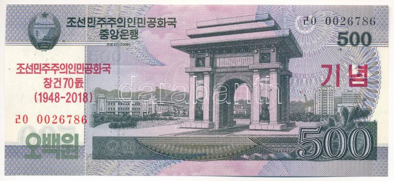 Észak-Korea 2018. 500W "A Koreai Népi Demokratikus Köztársaság megalapításának 70. évfordulója" emlék bankjegy T:UNC,AU