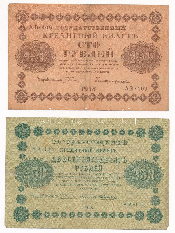 Russian Socialist Federated Soviet Republic 1918. 100 Rubles + 250 Rubles C:F