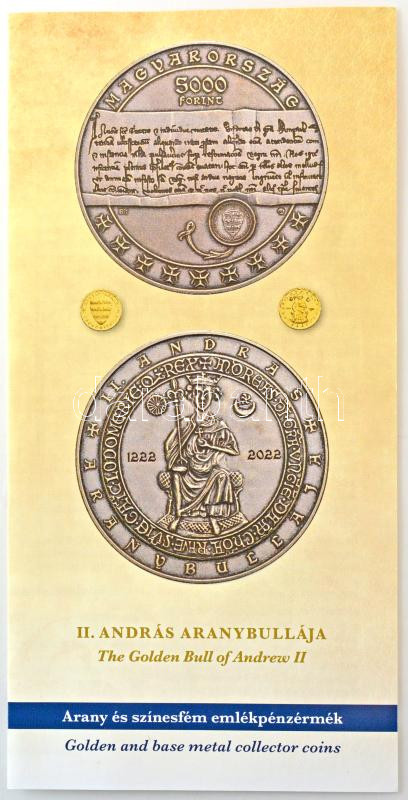 2022. 10.000Ft Au "II. András Aranybullája" kapszulában, tanúsítvánnyal, MNB tájékoztatóval (0,5g/0.999) T:BU Hungary 2022. 10.000 Forint Au "Golden Bull of 1222" in capsule (0,5g/0.999) C:BU