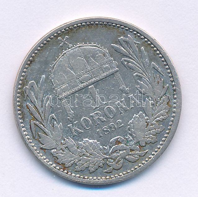 Leírás: 1892KB 1K Ag "Ferenc József" technológiai hibás veret (30 fokkal elfordult hátlap) T:F patina