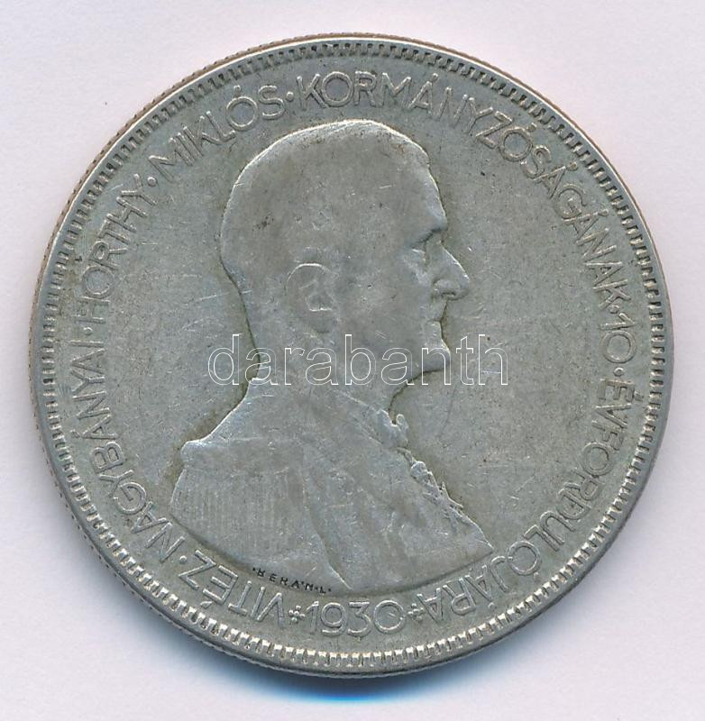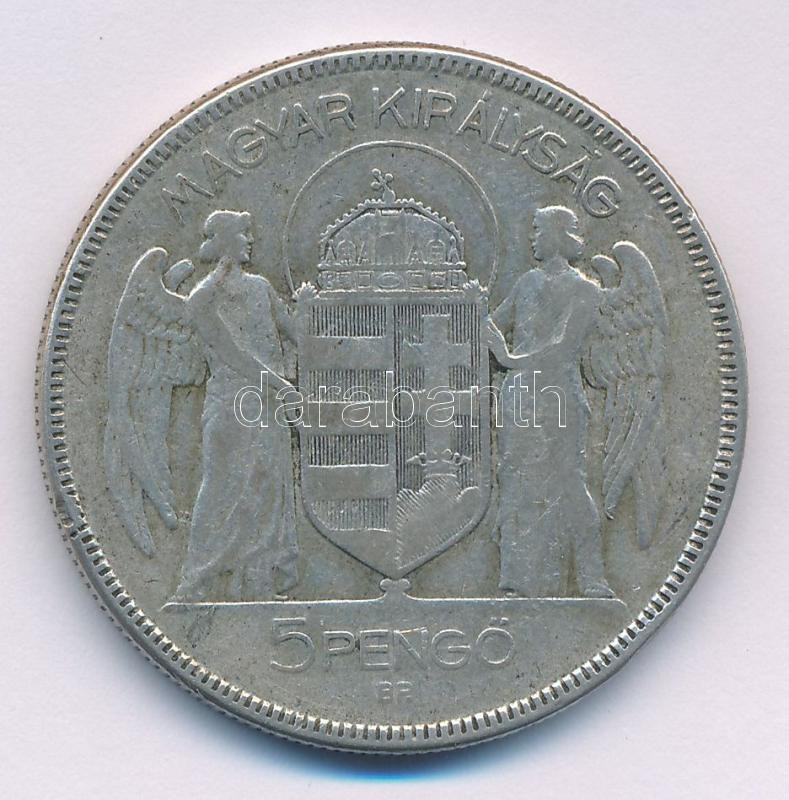 Leírás: 1930. 5P Ag "Horthy jobbra" T:F patina Adamo P8