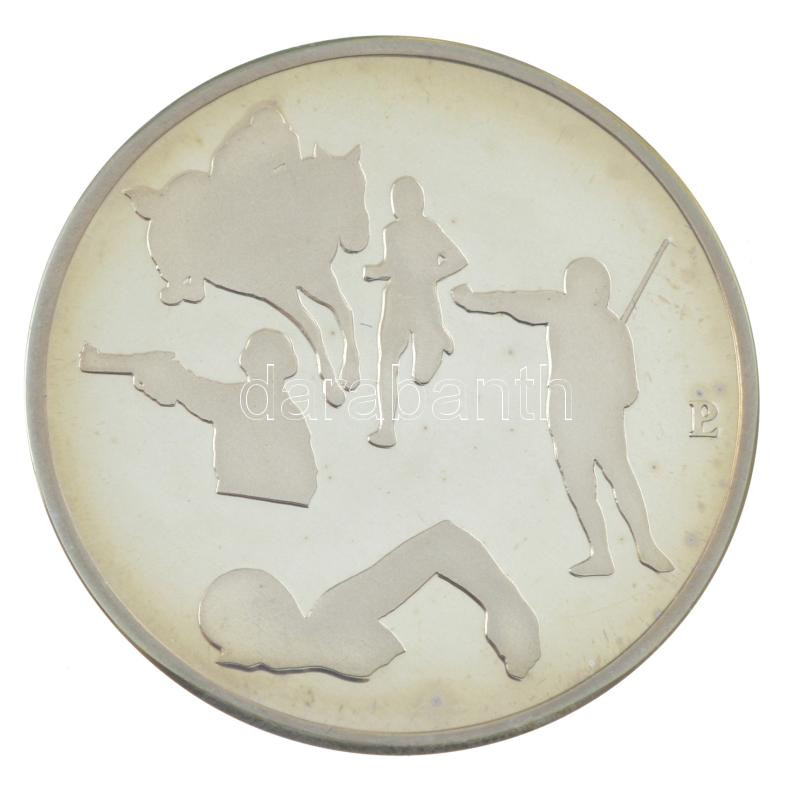 1990. "Magyar Csapat 1992 - CITIVS, ALTIVS, FORTIVS / Öttusa" a Barcelonában rendezett nyári Olimpia alkalmából készült, jelzetlen Ag emlékérem kapszulában, sorszámozott "3619" tanúsítvánnyal, eredeti dísztokban. Szign.: Papp László (31,5g/0,925/42,5mm) T:PP patina, sérült tok