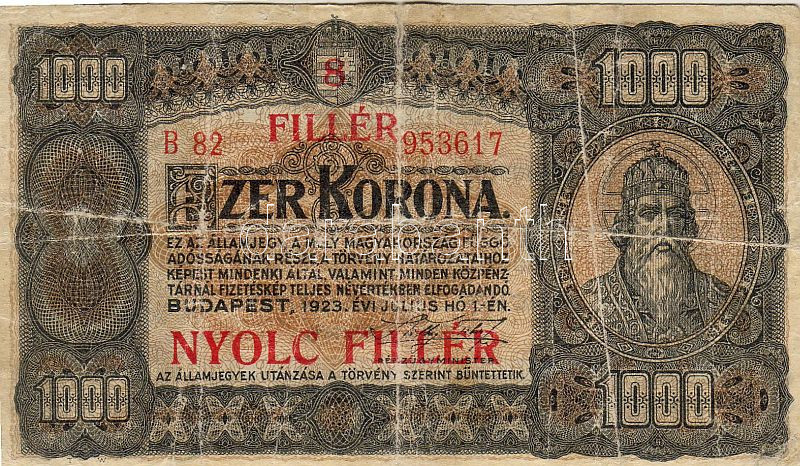 Leírás: 1923. 1000K 8f fny-sal T:III/IV+