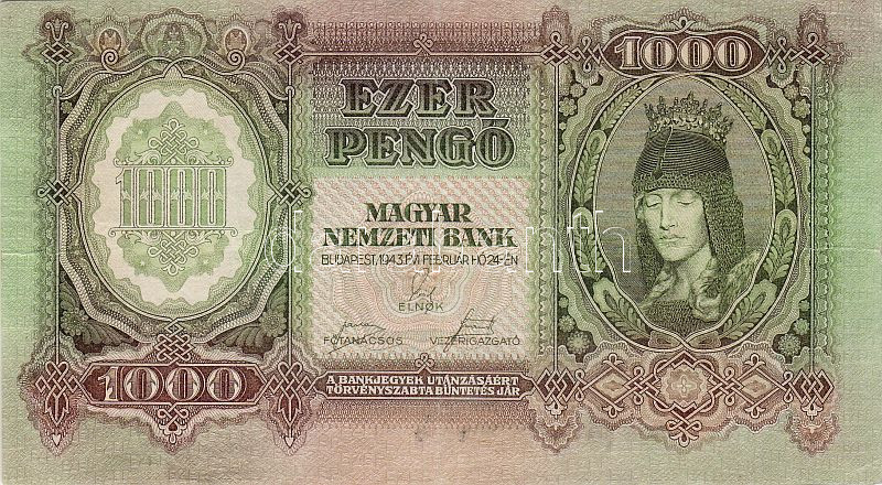 1943. 1000P "Szálasi" előlapi nyomat erősen felfelé csúszva! T:II https://www.darabanth.com/hu/44-Gyorsarveres/44.0/Numizmatika/NUMIZMATIKA-NUMISMATICS~256/1943-1000P-Szalasi-elolapi-nyomat-erosen-felfele-csuszva-TII~II86956