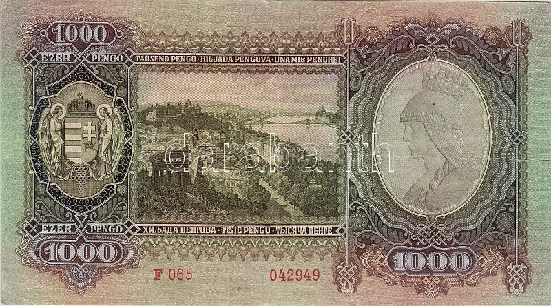 Leírás: 1943. 1000P "Szálasi" előlapi nyomat erősen felfelé csúszva! T:II