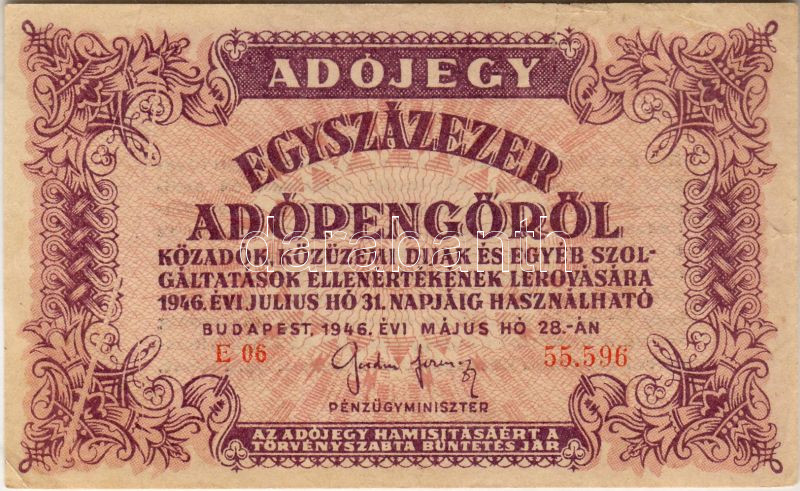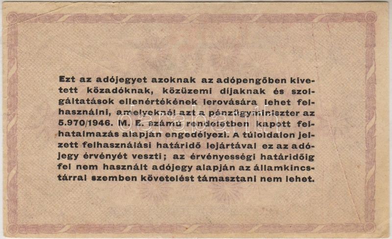 Leírás: 1946. 100.000Adópengő előlapon erős átfedő papírráncokkal T:III/IV