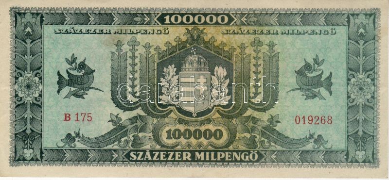 1946. 100.000Milpengő alapnyomat és felirat felfelé, ill. erősen jobbr... https://www.darabanth.com/hu/44-Gyorsarveres/44.0/Numizmatika/NUMIZMATIKA-NUMISMATICS~256/1946-100000Milpengo-alapnyomat-es-felirat-felfele-ill-erosen-jobbra-csuszva-TIIplus-Csak-egys~II87474