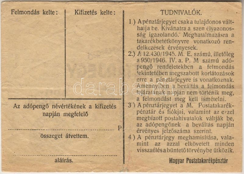 1946. 10.000Adópengő pénztárjegy sor- és sorozatszám nélkül "Másra át ... https://www.darabanth.com/hu/44-Gyorsarveres/44.0/Numizmatika/NUMIZMATIKA-NUMISMATICS~256/1946-10000Adopengo-penztarjegy-sor-es-sorozatszam-nelkul-Masra-at-nem-ruhazhato-szC3~II86950