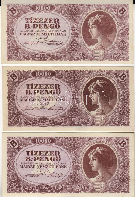 1946. 10.000B.-pengő (3x) T:I,I- https://www.darabanth.com/hu/44-Gyorsarveres/44.0/Numizmatika/NUMIZMATIKA-NUMISMATICS~256/1946-10000B-pengo-3x-TI-I-~II87466