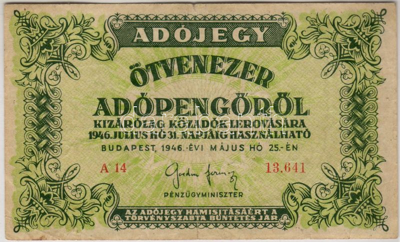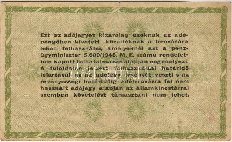 Leírás: 1946. 50.000Adópengő hátlapon felcsúszott nyomattal T:II/III