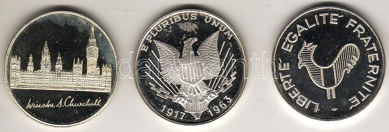 Leírás: 1970-es évek 3 klf modern emlékérem "Kennedy, Churchill, De Gaulle" T:exPP