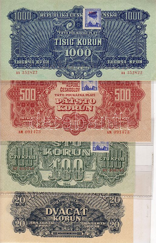Csehszlovákia 1944. 20K "V.H." Specimen (Minta) perf., 100K "V.H." Spe... https://www.darabanth.com/hu/44-Gyorsarveres/44.0/Numizmatika/NUMIZMATIKA-NUMISMATICS~256/Csehszlovakia-1944-20K-VH-Specimen-Minta-perf-100K-VH-Specimen-perf-plus-felulnyomott-e~II87147