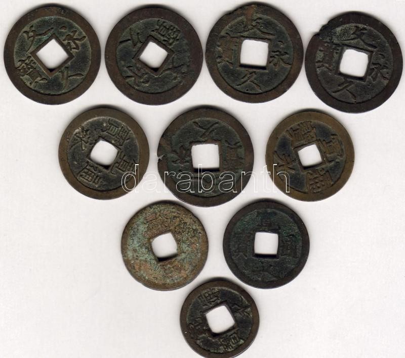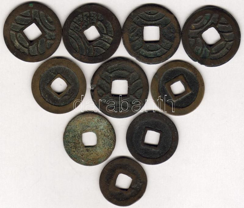 Leírás: Japán XIX.sz. 10db bronzpénz T:2/3,3/4