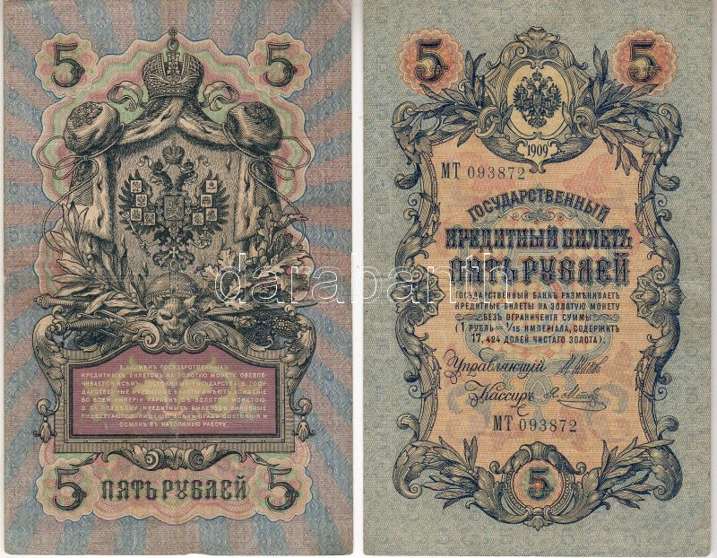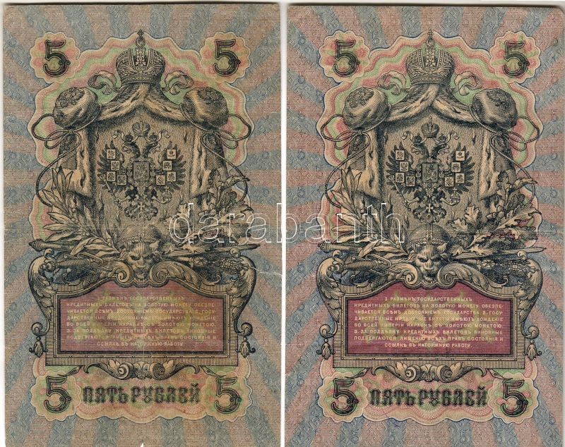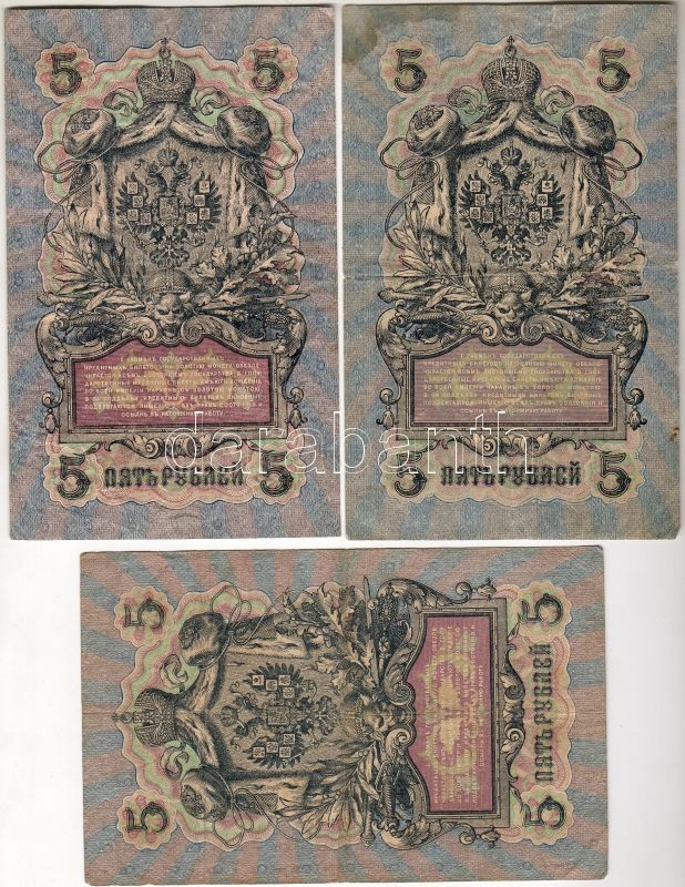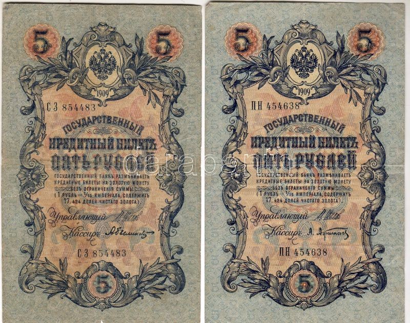 Oroszország 1909. 5R 7 klf variáns, pénztárosi aláírások mind különfél... https://www.darabanth.com/hu/44-Gyorsarveres/44.0/Numizmatika/NUMIZMATIKA-NUMISMATICS~256/Oroszorszag-1909-5R-7-klf-varians-penztarosi-alairasok-mind-kulonfelek-Ttobbnyire-II~II86994