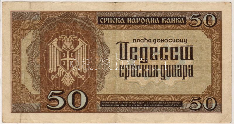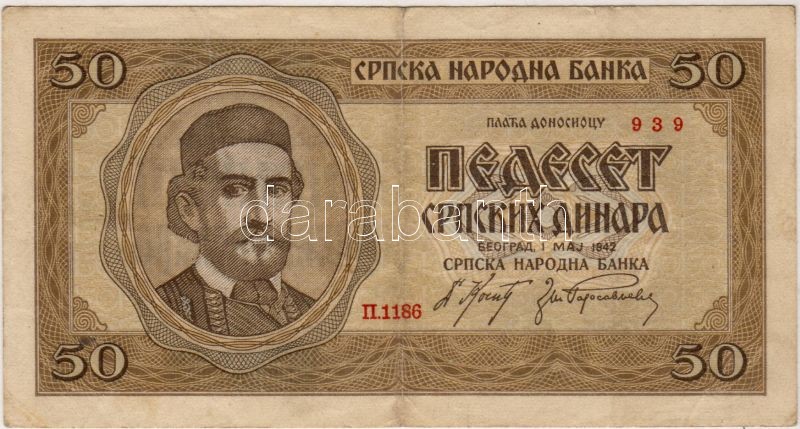 Szerbia/Német megszállás 1942. 50D T:II https://www.darabanth.com/hu/44-Gyorsarveres/44.0/Numizmatika/NUMIZMATIKA-NUMISMATICS~256/SzerbiaNemet-megszallas-1942-50D-TII~II79243