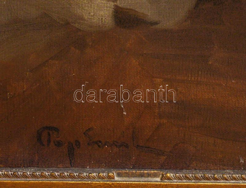 Pap Emil (1884-1955): Lány tükörrel. Olaj, vászon. Jelezve balra lent. Hátoldalán 1930 körüli Ernst Múzeum aukciói raglappal. Apró felületi sérülésekkel, kopásokkal. Korabeli, sérült fakeretben. 90×81 cm. KIZÁRÓLAG SZEMÉLYES ÁTVÉTEL, NEM POSTÁZZUK! / oil on canvas, signed lower left, with veríy minor surface damages. ONLY PERSONAL COLLECTION AT OUR OFFICE!