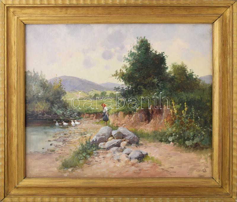 Zorkóczy Gyula (1873-1932): Libapásztorlány. Olaj, vászon, jelzett. De... https://www.darabanth.com/hu/44-Nagyaukcio/44.1/Festmenyek-es-grafikak/Klasszikus-festmenyek-es-grafikak~17970/Zorkoczy-Gyula-1873-1932-Libapasztorlany-Olaj-vaszon-jelzett-Dekorativ-fakeretben-50C3976~II3343964