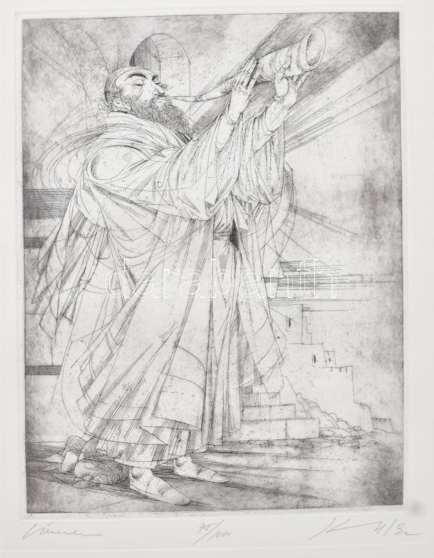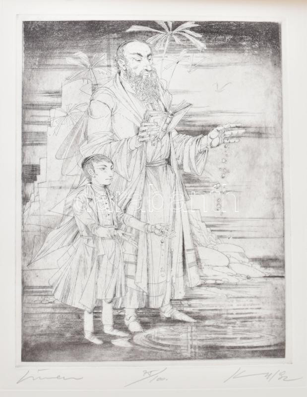 Kass János (1927-2010): Zsidó ünnepek mappa. 14 db rézkarc, papír, mindegyik jelzett és számozott (75/100). Eredeti, kiadói plüss borítású mappában, mappán fém menórával. Komplett, hiánytalan judaika és művészeti ritkaság!
