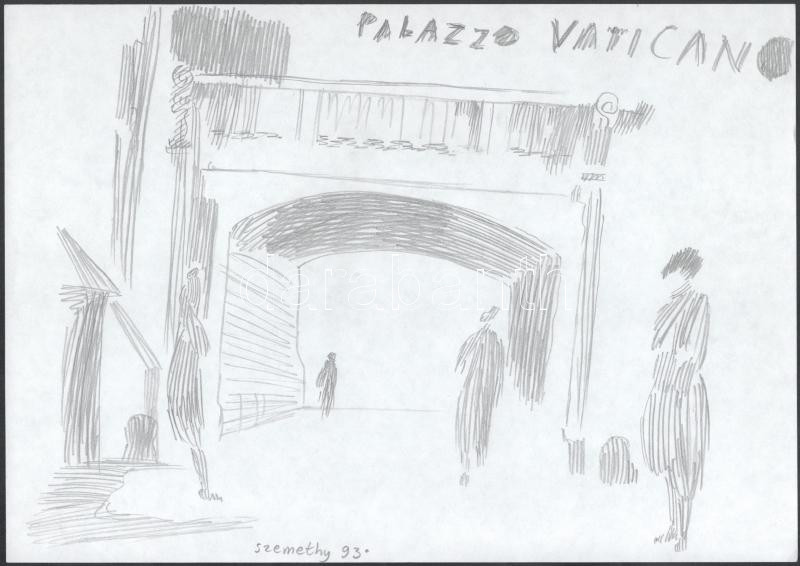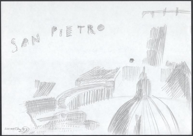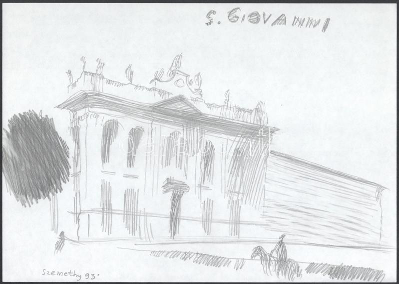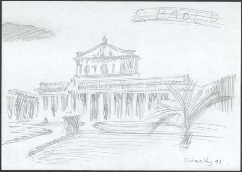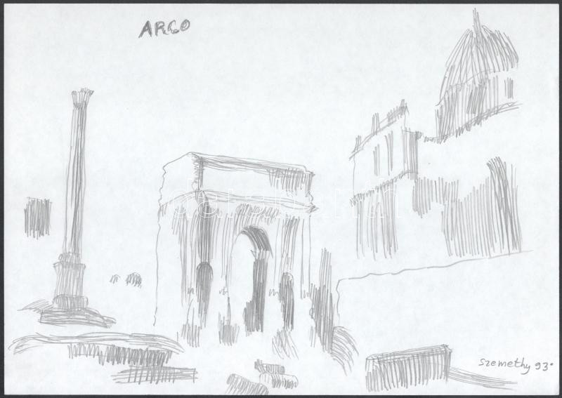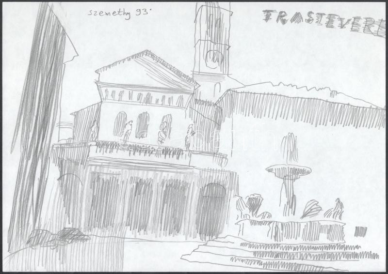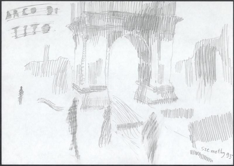Szemethy Imre (1945-): Római egységcsomag, 41 db rajz római épületekről, helyszínekről, 1993. Ceruza, papír, három kivételével mindegyik jelzett. Mindegyik külön lapon. Szemethy Imre által feliratozott fedlappal, műanyag mappában. 21×30 cm