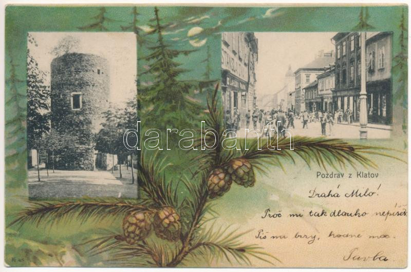 Leírás: 1901 Klatovy, tower, street, shop of Stanislav Zyka. Josef Cejka Art Nouveau litho (fl)