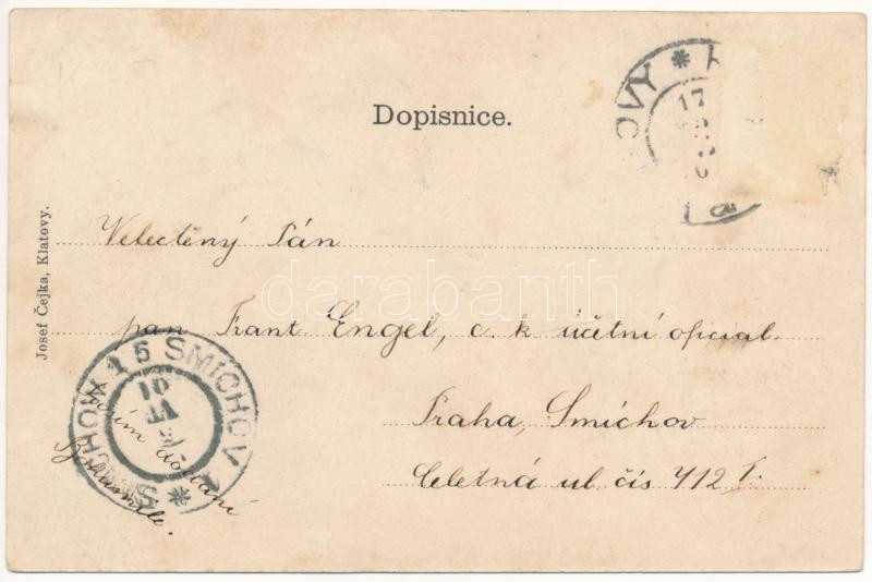 1901 Klatovy, tower, street, shop of Stanislav Zyka. Josef Cejka Art N... https://www.darabanth.com/hu/44-Nagyaukcio/44.1/Kepeslapok/Cseh-Koztarsasag~18279/1901-Klatovy-tower-street-shop-of-Stanislav-Zyka-Josef-Cejka-Art-Nouveau-litho-fl~II3124715