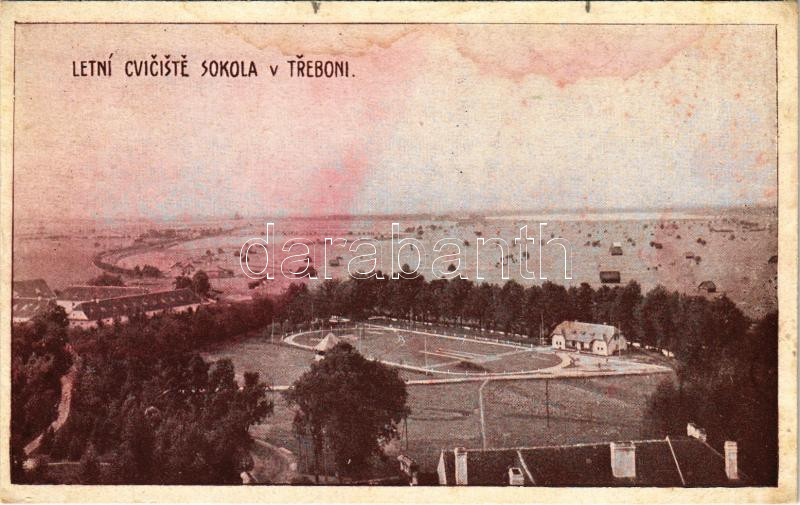 Leírás: 1925 Trebon, Wittingau; Letni cviciste skola / traning school, sports field (ázott / wet damage)
