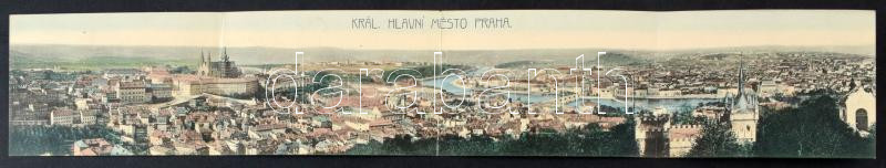 Leírás: Praha, Prag; Král. hlavní Mesto / general view - 4-tiled folding panoramacard (torn at fold)