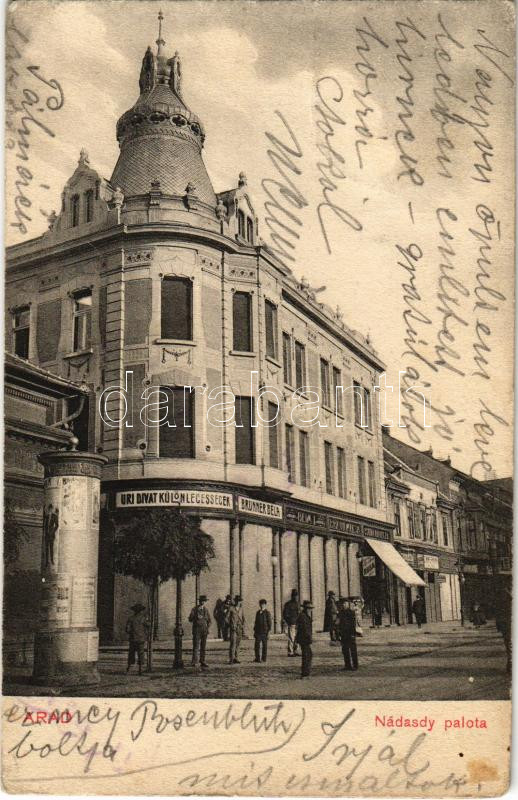 Leírás: 1910 Arad, Nádasdy palota, Brunner Béla, Heim üzlete / palace, shops (fa)