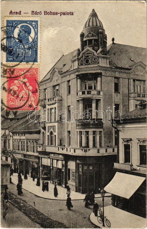 Arad, Báró Bohus palota, Aradi Ipar és Népbank, üzletek / palace, bank... https://www.darabanth.com/hu/44-Nagyaukcio/44.1/Kepeslapok/Erdely~18210/Arad-Baro-Bohus-palota-Aradi-Ipar-es-Nepbank-uzletek-palace-bank-shops-EK~II3062377