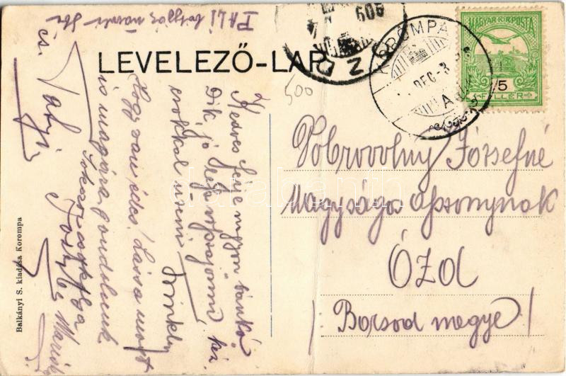 Leírás: 1909 Alsószalánk, Nizné Slovinky (Szepes); élelmezési üzlet, főiroda. Balkányi S. kiadása (Korompa) / food shop, office (fa)