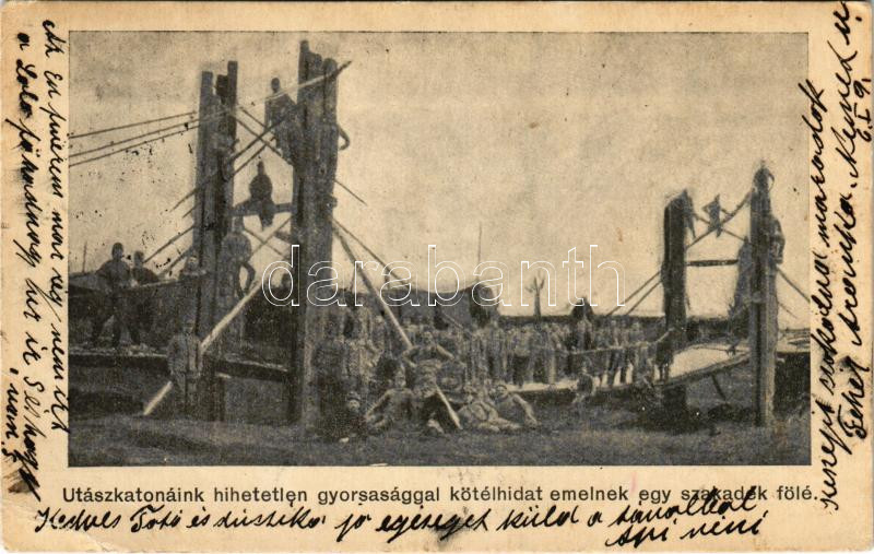 1914 Utász katonáink hihetetlen gyorsasággal kötélhidat emelnek egy sz... https://www.darabanth.com/hu/44-Nagyaukcio/44.1/Kepeslapok/Katonai~18240/1914-Utasz-katonaink-hihetetlen-gyorsasaggal-kotelhidat-emelnek-egy-szakadek-fole-Gringling~II2940341