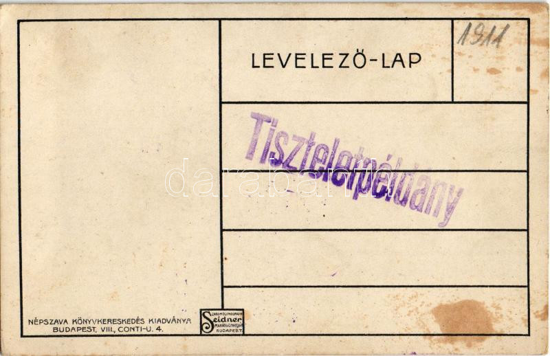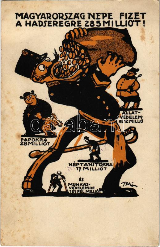 Leírás: Magyarország népe fizet a hadseregre 285 milliót! Népszava könyvkereskedés kiadványa. Szociáldemokrata propaganda. Seidner Chromolithografia / WWI Hungarian anti-war social democratic propaganda s: Bíró + "TISZTELETPÉLDÁNY" (fl)