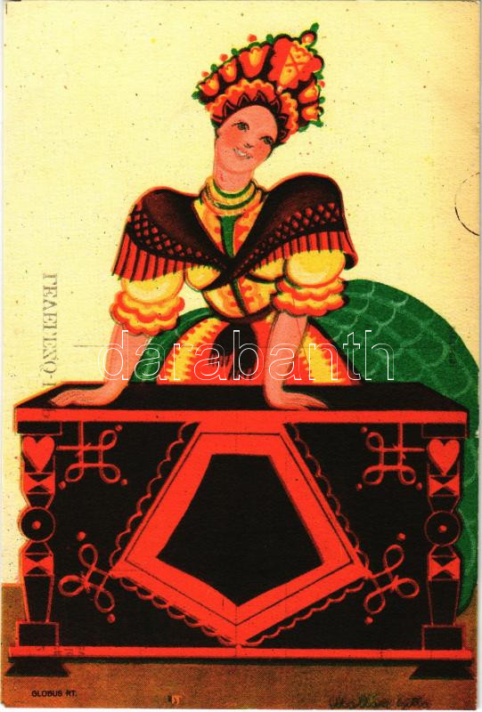 Magyar folklór művészlap. Globus R.T. / Hungarian folklore art postcar... https://www.darabanth.com/hu/44-Nagyaukcio/44.1/Kepeslapok/Reklam~18251/Magyar-folklor-muveszlap-Globus-RT-Hungarian-folklore-art-postcard-s-Mallasz-Gitta~II3063870