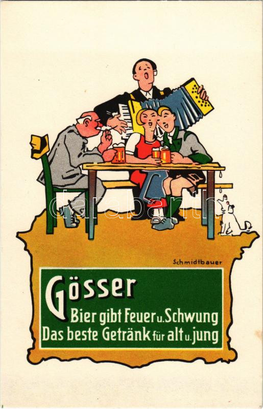 Bier gibt Feuer u. Schwung Das beste Getränk für alt u. jung. Gösser Brauerei A.G. Leoben-Göss, Steiermark-Austria / Austrian Gösser beer advertisement s: Schmidtbauer