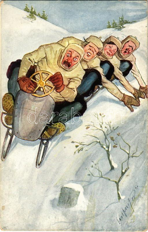 Winter sport art postcard with four-man controllable bobsled, bobsleig... https://www.darabanth.com/hu/44-Nagyaukcio/44.1/Kepeslapok/Sport~18254/Winter-sport-art-postcard-with-four-man-controllable-bobsled-bobsleigh-sledding-down-humour-BK~II3063609