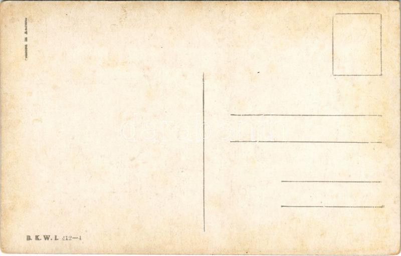 Leírás: Winter sport art postcard with four-man controllable bobsled, bobsleigh, sledding down, humour. B.K.W.I. 412-4. s: Carl Josef (worn corners)
