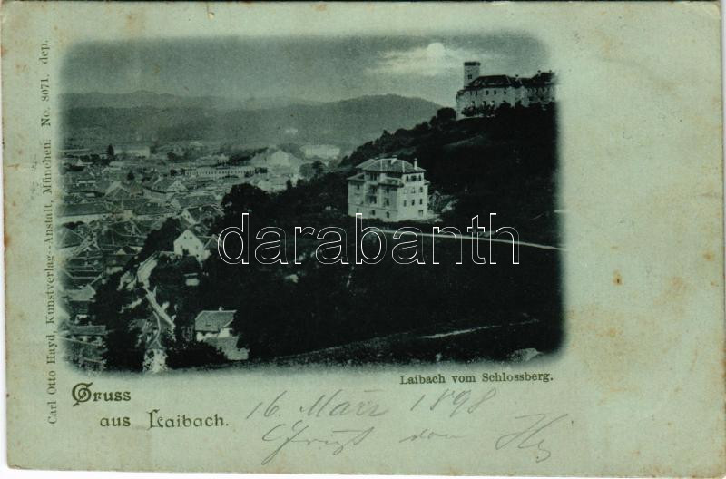 Leírás: 1898 (Vorläufer) Ljubljana, Laibach; vom Schlossberg. Carl Otto Hayd Kunstverlag.-Anstalt (München) No. 8071. / general view, castle, mountain (fl)