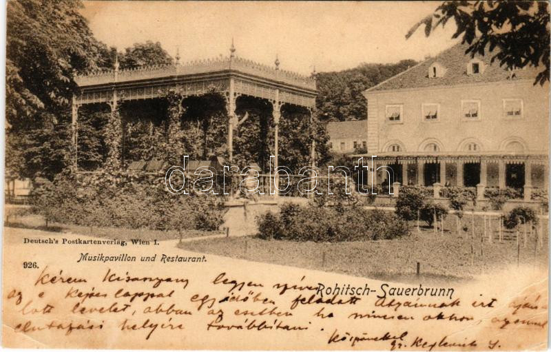 1900 Rogaska Slatina, Rohitsch-Sauerbrunn; Musikpavillon und Restauran... https://www.darabanth.com/hu/44-Nagyaukcio/44.1/Kepeslapok/Szlovenia~18326/1900-Rogaska-Slatina-Rohitsch-Sauerbrunn-Musikpavillon-und-Restaurant-Deutschs-Postkartenverlag-~II3289450
