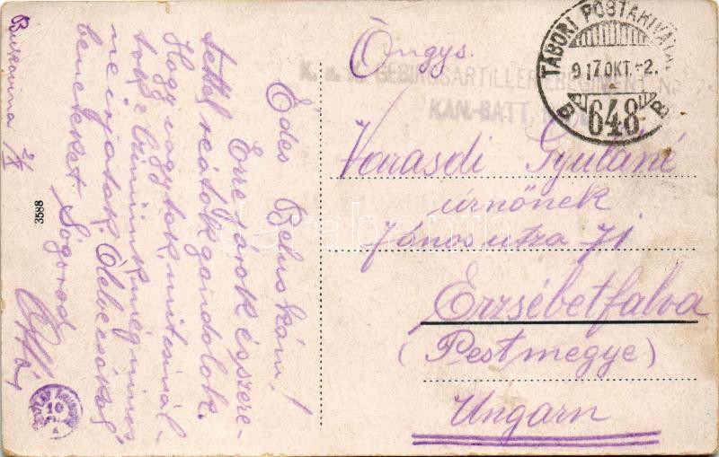 Leírás: 1917 Chernivtsi, Czernowitz, Cernauti, Csernyivci (Bukovina, Bucovina, Bukowina); Hauptbahnhof / main railway station + "TÁBORI POSTAHIVATAL 648" + "K.U.K. GEBIRGSARTILLERIEREGIMENT NO. 20. KAN.-BATT. ?" (EB)