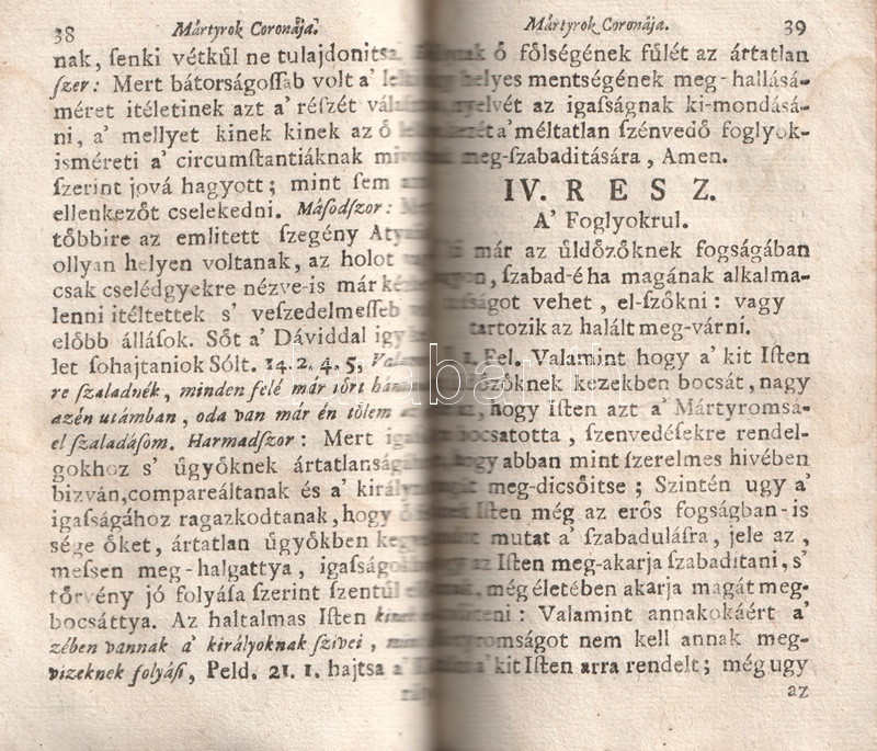 Mártyrok coronája, Melly Az Evangeliomi igaz vallásban álhatatossaknak, és a' Mártyromság szenvedésben diadalmassaknak, Fejekben Liliom szinü szép Gyémántokkal, s' Rosa szinü drága Rubintokkal, fénlik: (tudni illik,) Olly idvességes Könyvecske: Mellyben Miképpen kellessék a' Szenteknek a' Kristus vallásában megmaradni, az üldözésben magokat viselni, a' számkivetést, tömlóczöt szenvedni s' a' Mártyromságban gyözedelmeskedni? Viahossan meg-mutatyya Szönyi N. István.