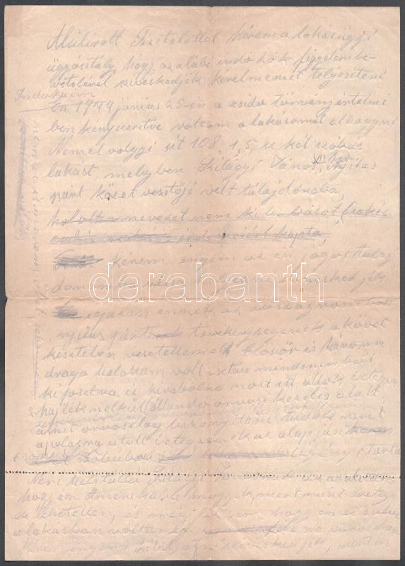 1910-1946 Zsidó-család irathagyatéka, benne kézzel írt Nyilas uralom alatt elvett lakás visszaszerzésére irányuló kérelemmel, részben géppel írt, kézzel írt leltárral, Magyar Zsidók Szövetsége Lakáshivatal lakás beutaló okmány (1944. jun. 23.), Magyar Zsidók Szövetsége be- és kijelentőlap (lakás,1944. jún. 23.), nőiszabó igazolvány (1946), vöröskereszt bronz díszérem adományozó okirat (1917), sérült népfölkelési okirat (1917), Budapest-Főváros I. ker. Elöljárósága Nyilvántartó Hivatala igazolványi lap (1920), Budapesti Kereskedelmi és Iparkamara igazolvány, változó állapotban, közte sérült is.