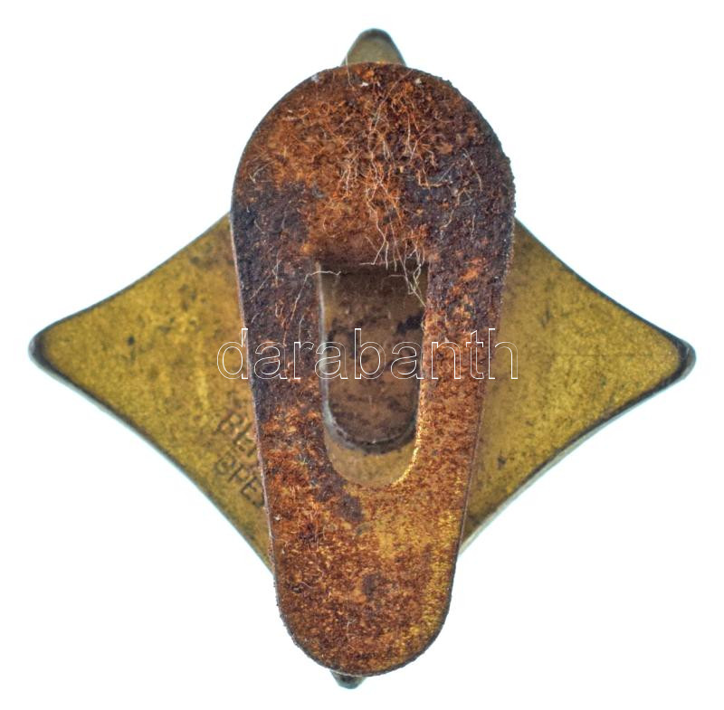 ~1942. "A Magyar Vöröskereszt Díszjelvénye" aranyozott, zománcozott bronz kitüntetés, hátoldalon "BERÁN N. BUDAPEST DÖBRENTEI U. 2." gyártói jelzéssel (64x64mm) + "A Magyar Vöröskereszt Díszjelvénye" aranyozott, zománcozott bronz gomblyukjelvény, hátoldalon "BERÁN N. BUDAPEST DÖBRENTEI U. 2." gyártói jelzéssel (24x24mm). A két jelvény eredeti, kék színű, a fedlap belsején "Berán Nándor iparművész (...)" díszdobozzal. T:UNC,AU patina / Hungary ~1942. "Hungarian Red Cross Award Badge" gilt, enamelled bronze decoration, on the backside "BERÁN N. BUDAPEST DÖBRENTEI U. 2." makers mark (64x64mm) + "Hungarian Red Cross Award Badge" gilt, enamelled bronze decoration miniature buttonhole badge, with "BERÁN N. BUDAPEST DÖBRENTEI U. 2." makers mark on the backside (24x24mm). The two decorations comes with a original, blue color maker's display case. The inner side of the lid marked with "Berán Nándor iparművész (...)" C:UNC,AU