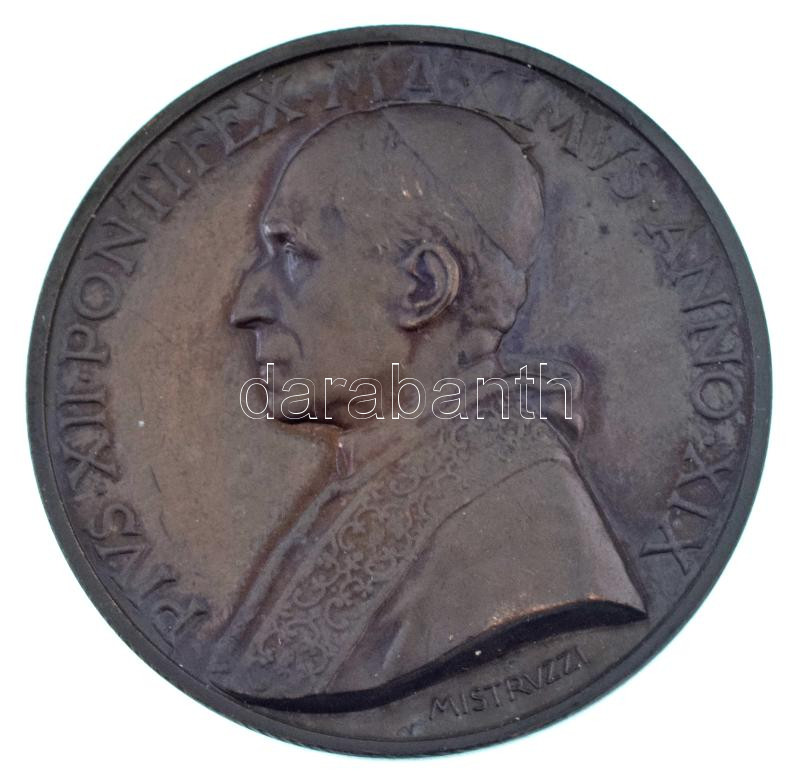 Vatican 1956. "Pope Pius XII / The Beatification of Pope Ince XI" two-sided bronze commemorative medallion. "PIVS XII PONTIFEX MAXIMVS ANNO XIX / INNOCENTIVS XI INTER BEATOS CAELITES A PIO. XII P. M. RELATVS D. VII OCT. MCMLVI" Sign.: Mistruzzi (33,28g/44,5mm) C:AU, patina
