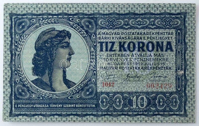 1919. július 15. 10K "1042 002429" T:F szép papír, kisebb ko... https://www.darabanth.com/hu/44-Nagyaukcio/44.1/Numizmatika/Magyar-bankjegyek~17954/1919-julius-15-10K-1042-002429-TF-szep-papir-kisebb-kopas-Hungary-15th-July-1919-10-Kor~II3286130