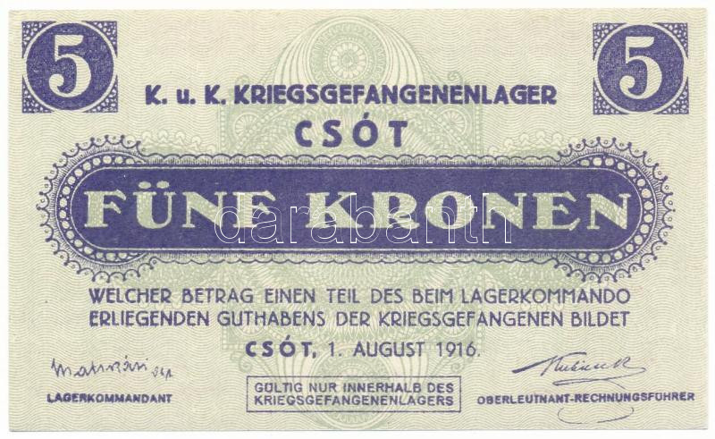 Csót / Hadifogolytábor 1916. augusztus 1. 5K sor- és sorozatszám nélkül T:AU / Hungary / Csót / POW Camp August 1st, 1916. 5 Korona without series and serial number C:AU